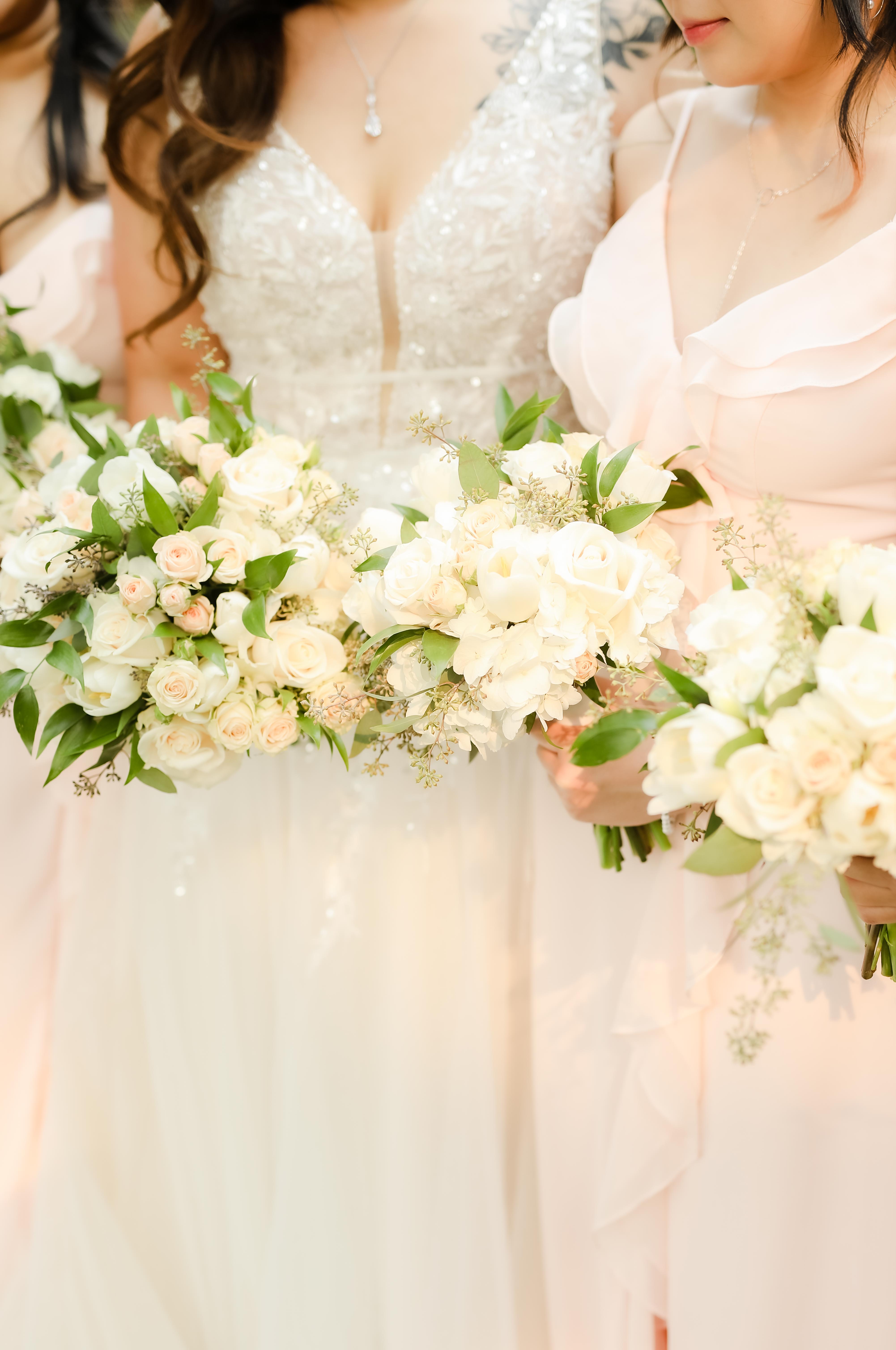 Faye & Kevin chose Vizcaya for their wedding day venue and Maria was selected as the lucky photographer from Elegant Events Media. With a hot August summer wedding like this, catching outdoor shots quickly is important so the wedding party doesn’t overheat! Maria was just right for this beautiful wedding and helped everyone stay on time and out of the heat promptly. From the shimmer of the brides heels to the sparkle of the dress, the details were so lovely. We also loved the colors of the wedding party and it would seem blush pink is the color of the year for 2021 weddings. The florals were light and airy. The cake followed suit with an all white elegant 3-tier design topped and decorated with the same gorgeous florals. The couple called it a night and had their grand exit with family, friends and many sparklers.